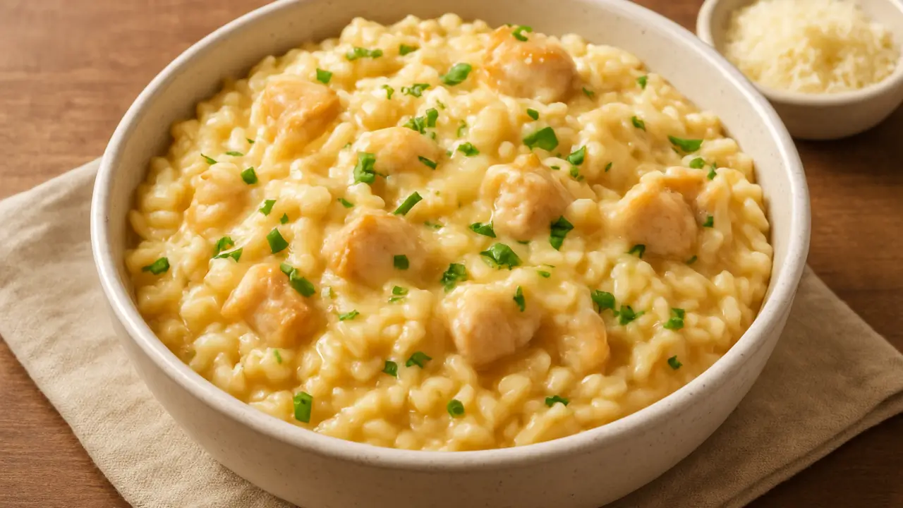 Um bom risoto de frango com queijo é daquelas receitas que abraçam a gente pelo cheiro e pelo sabor. Cremoso, quentinho e com aquele toque caseiro, ele é perfeito para reunir a família em volta da mesa.